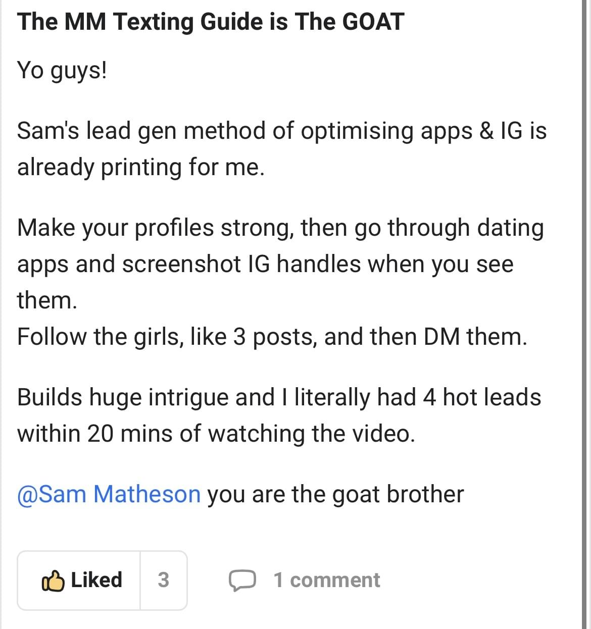 Sam's playbook used to transform 150+ men into high-status leaders.